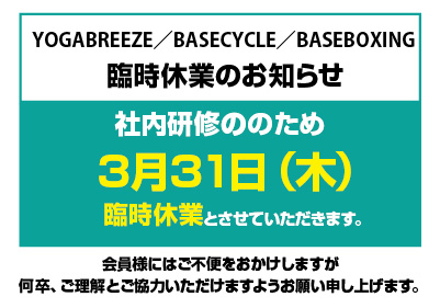3月31日(木)臨時休業のお知らせ