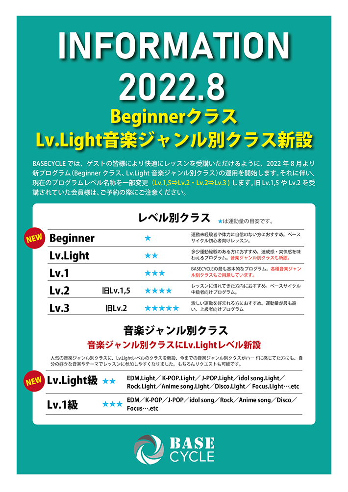 BASCYCLE新プログラム追加及びレベル名称変更のお知らせ